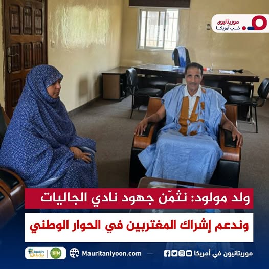 من جهته، عبّر الدكتور محمد ولد مولود عن دعمه للمبادرة، قائلاً: “نثمّن جهود النادي الموريتاني للجاليات، وندعم إشراك المغتربين في الحوار الوطني”، مؤكداً ترحيبه بكل تعاون يخدم مصلحة البلاد وأبنائها داخل الوطن وخارجه.